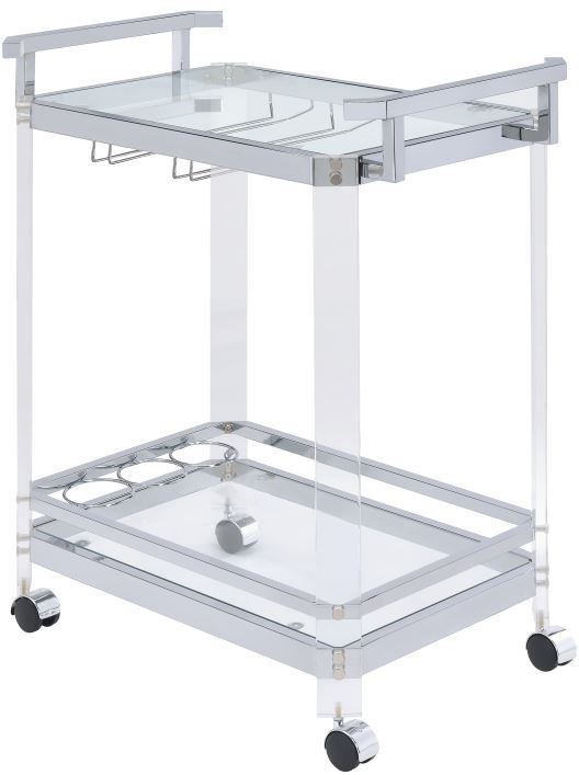 A serving cart is a delightful accoutrement for any home bar or indoor patio. This serving cart takes it to another level with an acrylic and metal frame finished in chrome. It features clear tempered glass shelves that's simple yet modern.Read More
