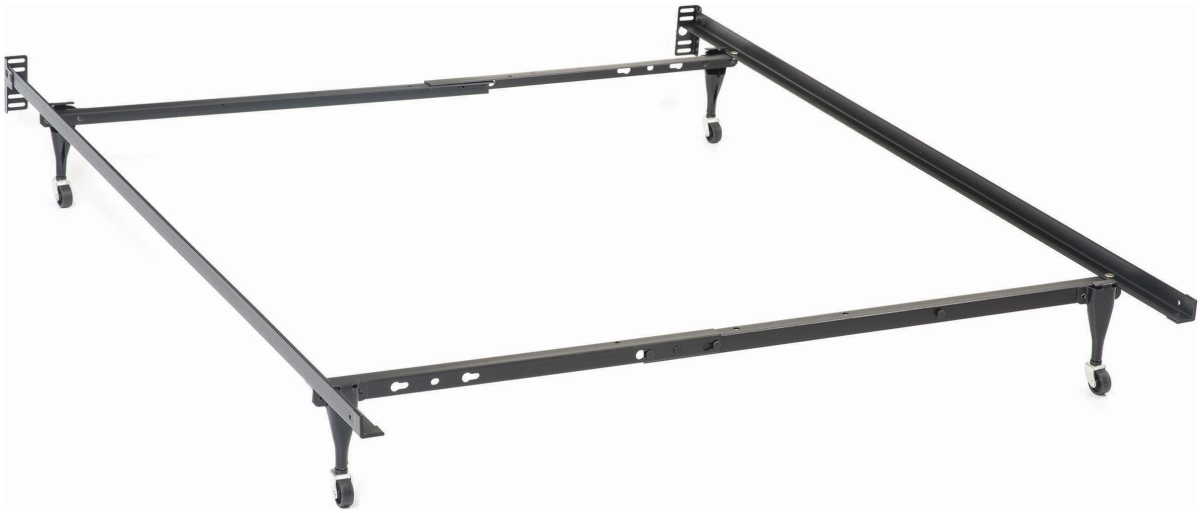 Set up the perfect foundation for a bed ensemble. This bed frame offers structural integrity and a solid design. A two-inch center beam shores up support for any mattress. With six legs on rollers, it allows for easy mobility. Accommodates headboards.