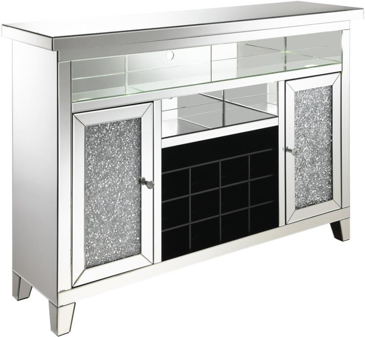 Faux diamond encrusted cabinet doors and crystal knobs offer a hint of sparkle