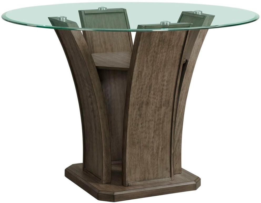 Bold gray pedestal base adds contemporary style